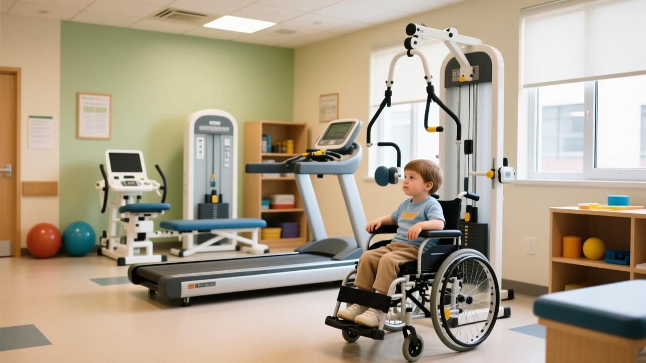 脑瘫儿童:优先考虑运动功能训练设备,比如带站立架、平衡板的康复器材