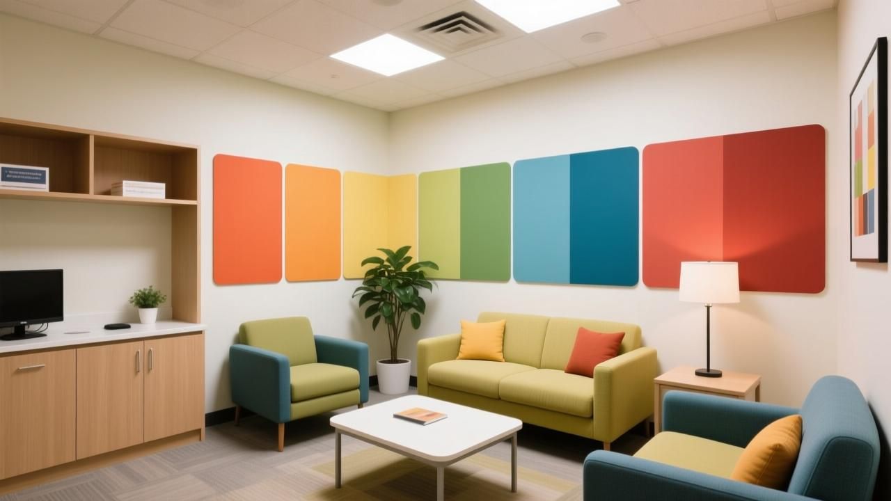 色彩设计对心理咨询室的氛围营造至关重要。乐育心健建议采用浅色调为主,如淡蓝、淡绿、米色等暖色调,给来访者以放松、愉快的感觉。避免使用高浓郁、高饱和度的颜色,因为这些颜色可能引发紧张和焦虑。