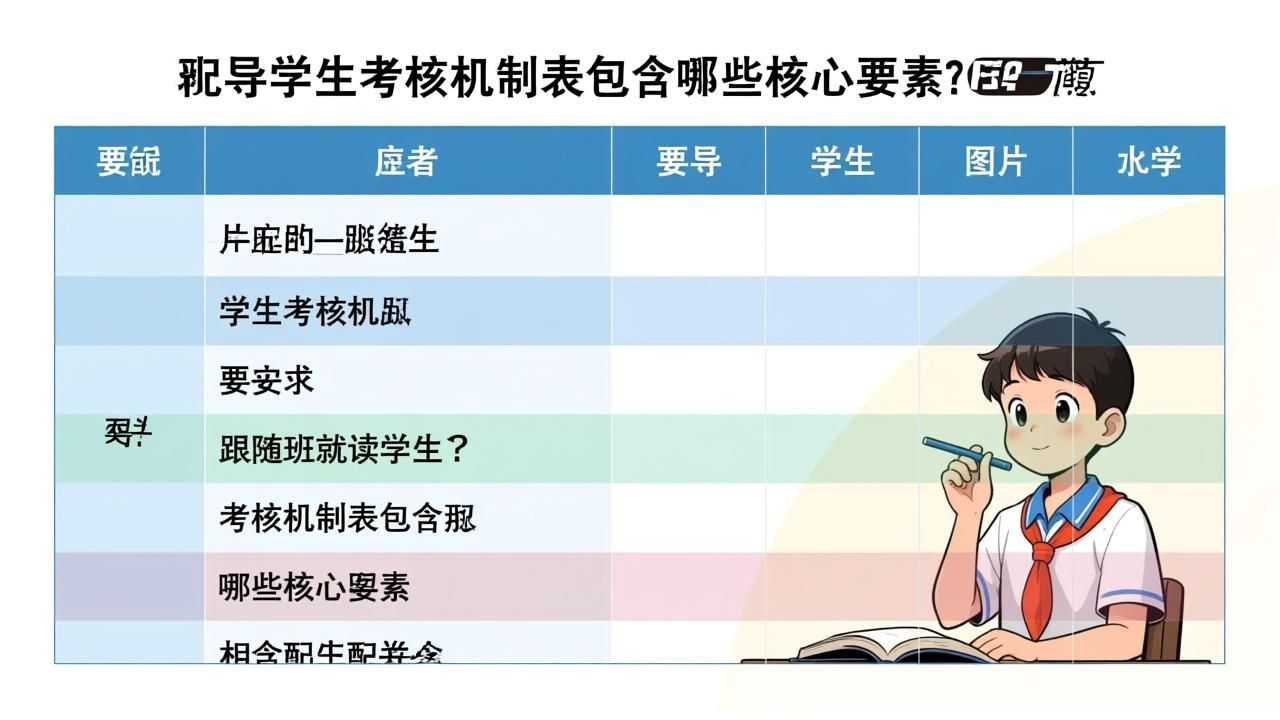 随班就读学生考核机制表需要细化到可操作、可测量的具体指标。根据广东省实施细则,考核应涵盖个别化教育计划的制定与实施情况。