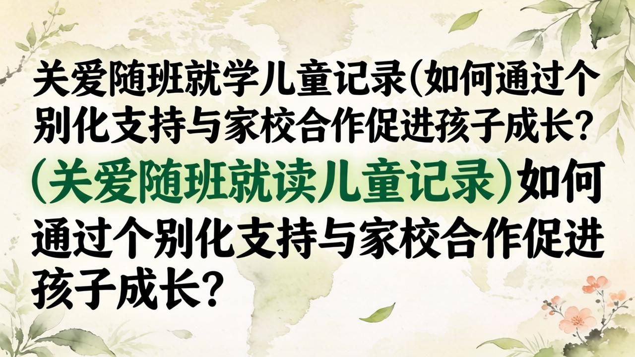 朋友们,当我们在谈论“关爱随班就读儿童记录”时,您是否曾思考过,这些记录不仅仅是纸上的文字,更是一个个孩子成长轨迹的真实写照,以及教育工作者和家长们爱心的结晶?今天,乐育心健就想和大家深入探讨一下,如何通过个别化支持与家校合作这两大关键策略,让关爱真正落到实处,帮助随班就读的孩子们更好地融入集体,绽放属于自己的光彩😊。