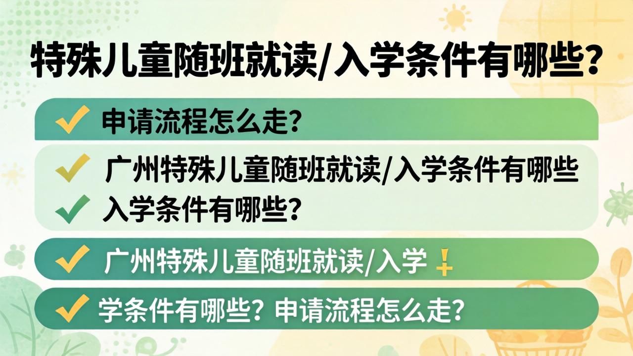 想要在广州申请随班就读的特殊儿童需要满足几个基本条件。首先是持有《残疾人证》或市级以上医院的医学诊断证明,证明孩子属于视力、听力、言语、肢体、智力障碍或自闭症谱系等残疾类别。
