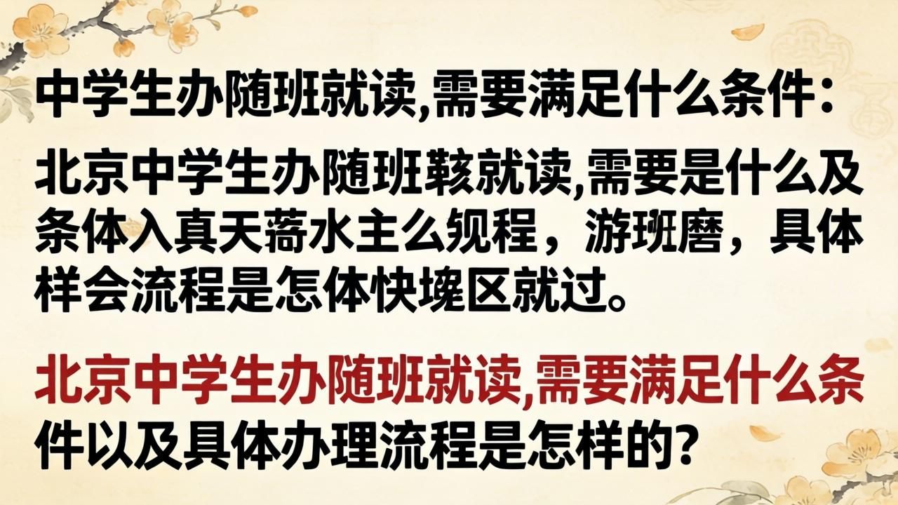 各位家长朋友们,最近兔哥被问到一个挺多人在关心的问题:“北京的中学生,要是想办随班就读,到底需要满足哪些条件?具体流程又是啥样的?” 这确实是个大事,关系到孩子的教育安排。兔哥今天就结合了解到的情况,给大家捋一捋,希望能帮到你 😊。