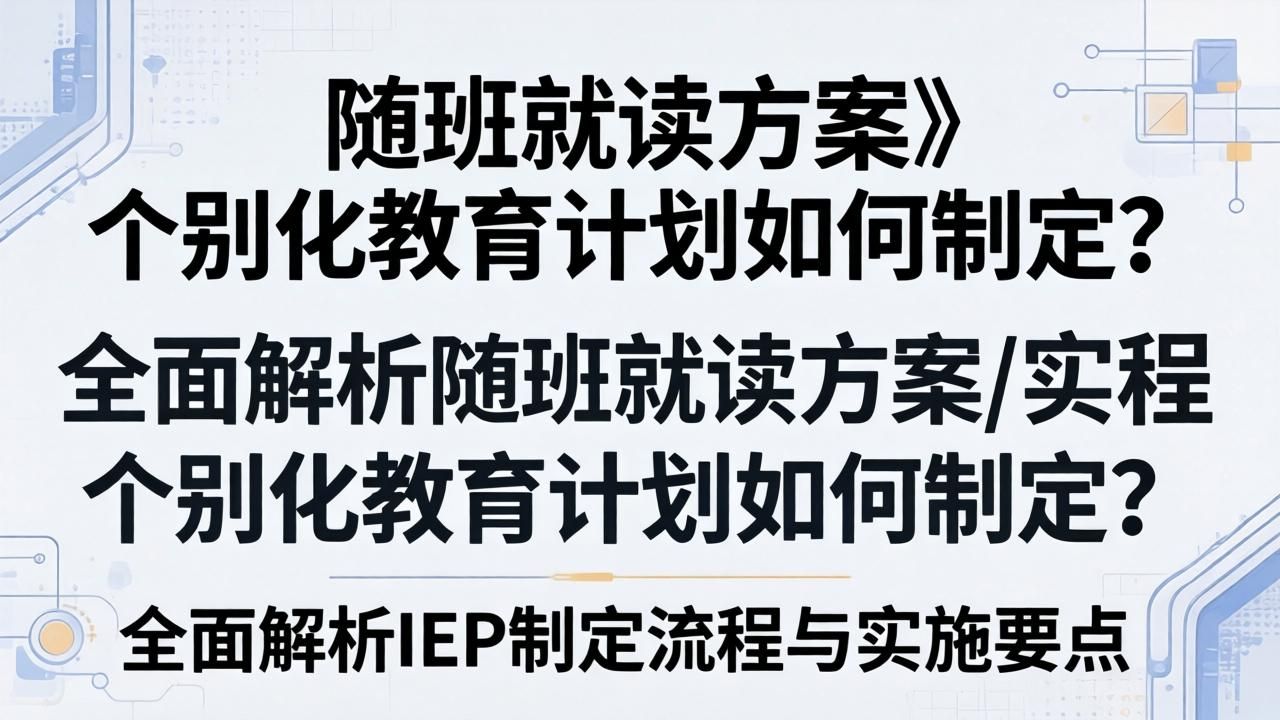 嗨,各位关注特殊教育的小伙伴们,今天咱们来聊聊一个挺重要的话题——残疾儿童随班就读的个别化教育方案(IEP)到底该怎么制定?🤔 说实话啊,这个问题可困扰着不少老师和家长呢!