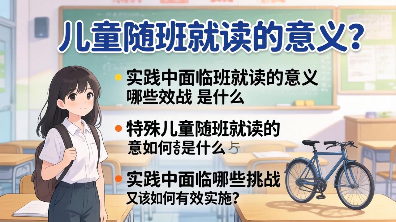 朋友们,当我们在讨论教育公平的时候,有没有想过特殊儿童的教育问题?🤔 说实话,每次看到有特殊需求的孩子在普通教室里和同学们一起学习,我都在想:这不仅仅是一个座位的问题,而是关乎尊重、包容和真正意义上的教育平等。那么,特殊儿童随班就读到底有什么意义,实践中又会遇到什么难题,咱们今天就来聊聊这个。
