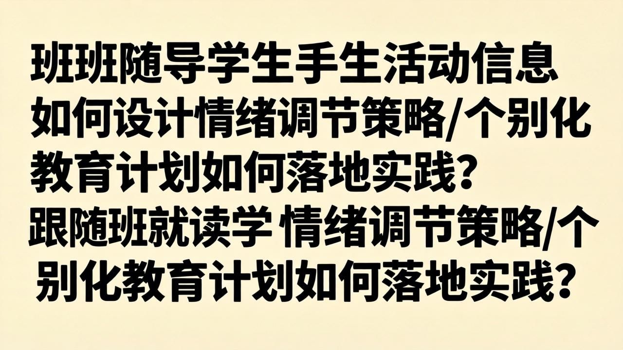 个人观点:情绪调节不是“压制情绪”,而是帮孩子建立“情绪-原因-应对”的联结。比如,有的孩子发脾气是因为课堂任务太难,这时调整任务难度比批评更有效。