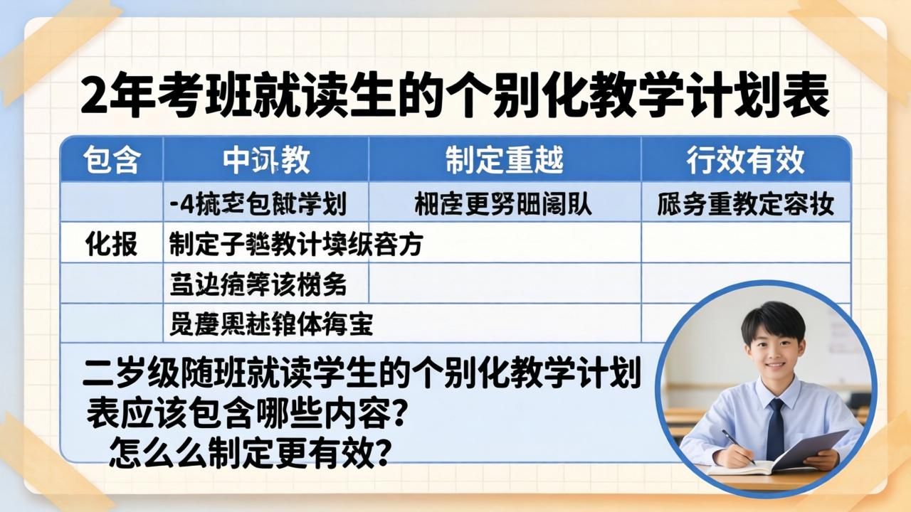 最近在准备二年级随班就读学生的教学计划,发现要制定一份真正适合孩子的个别化教学计划表还真不容易。经过查阅资料和实际教学体验,我整理了一些实用内容,希望能帮到有同样需求的老师们。