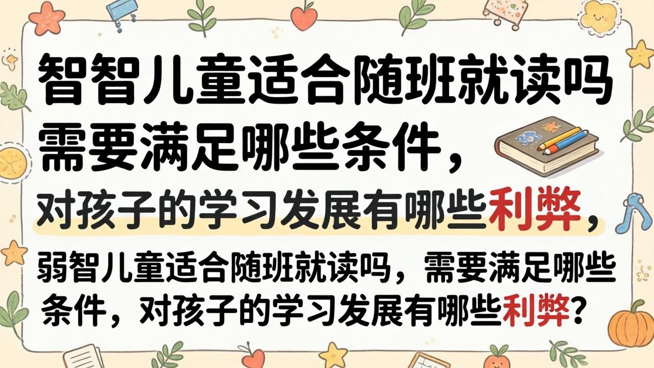 必须经过专业评估确定孩子是否适合随班就读。轻度智力障碍(智商50-69)可能适合随班就读,而中度及以上(智商35-49)则可能更适合培智班或康复训练为主的教育方式。