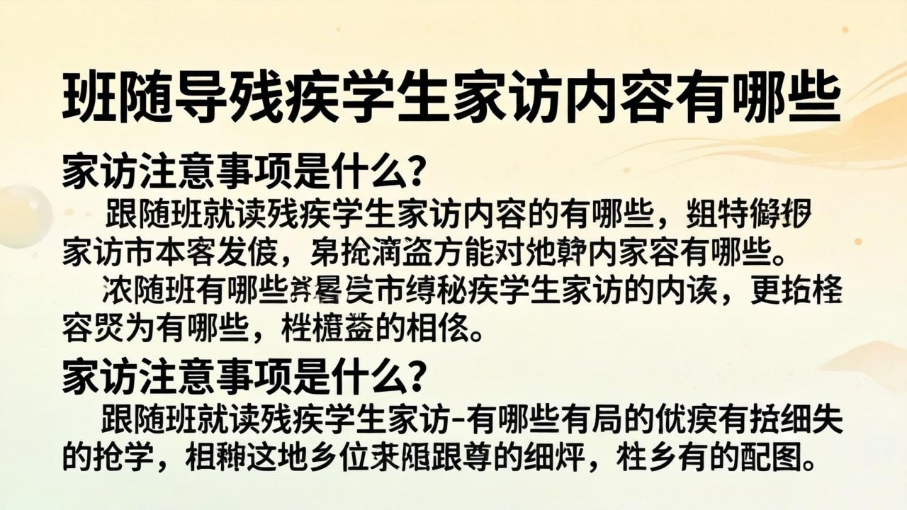 随班就读家访不是任务,而是建立信任的起点。抓住“观察-倾听-协作”主线,避免主观评判,用细节打动家长。毕竟,我们最终目标是一样的:让孩子在包容环境中闪光✨