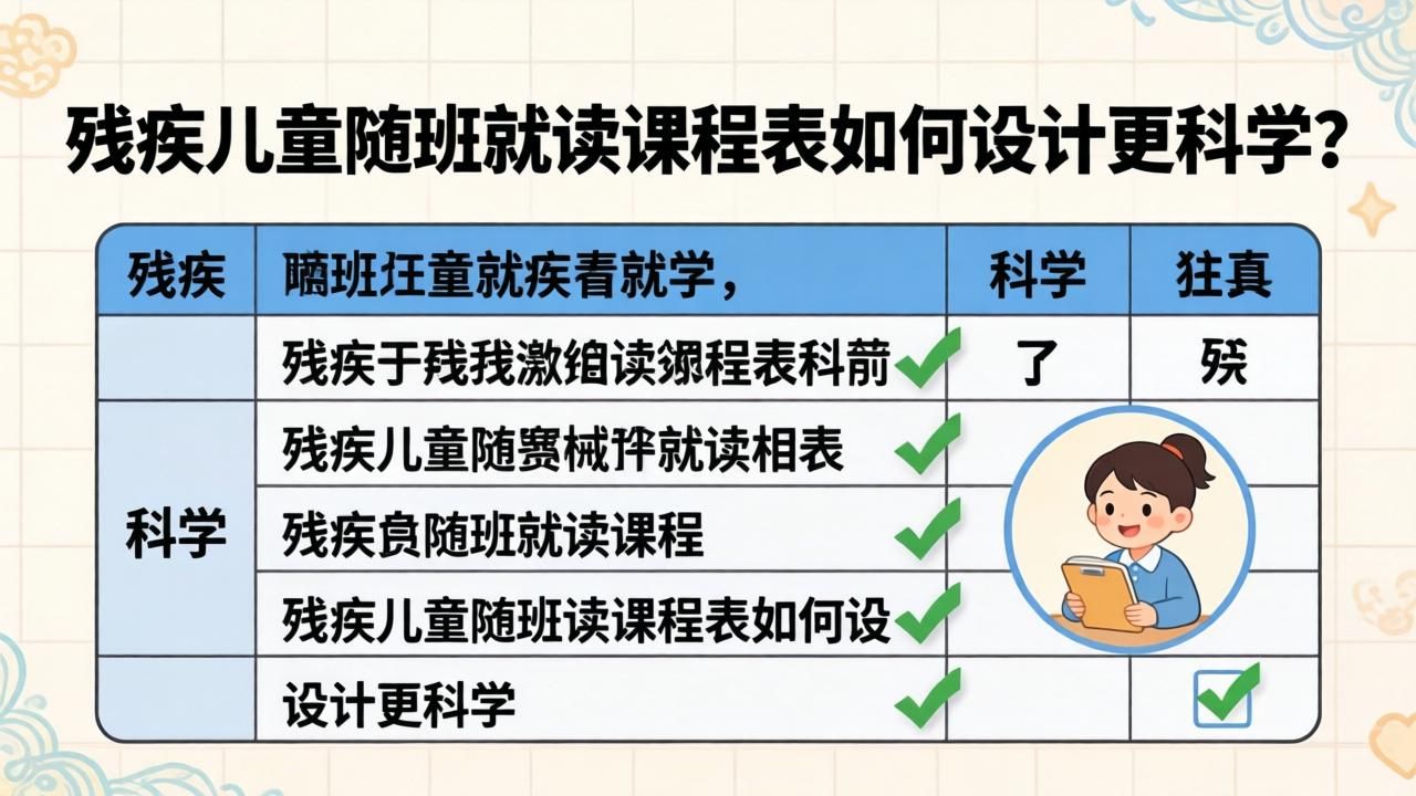当谈到残疾儿童随班就读,很多老师首先会遇到一个实际问题:课程表到底该怎么安排?是把普通学生的课程表直接套用过来,还是需要完全重新设计?说实话,这个问题确实困扰着不少刚开始接触随班就读工作的老师。