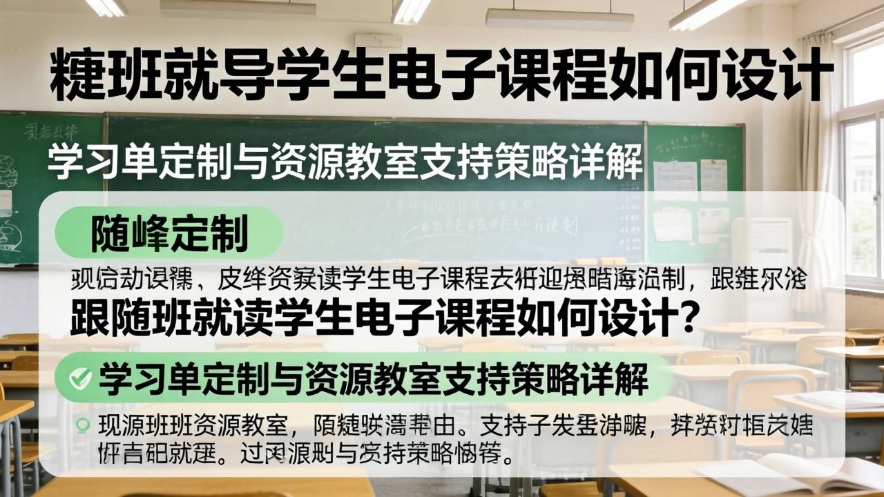 随班就读学生的电子课程设计确实是个需要仔细琢磨的事情,咱们常说要把特殊教育需求学生妥善安置在普通班级里,但真要让他们学得好,不光需要理念上的接纳,更得有一套科学实用的教学方案支撑。学习单作为随班就读学生电子课程的核心载体,其设计质量直接影响着学生的学习效果。