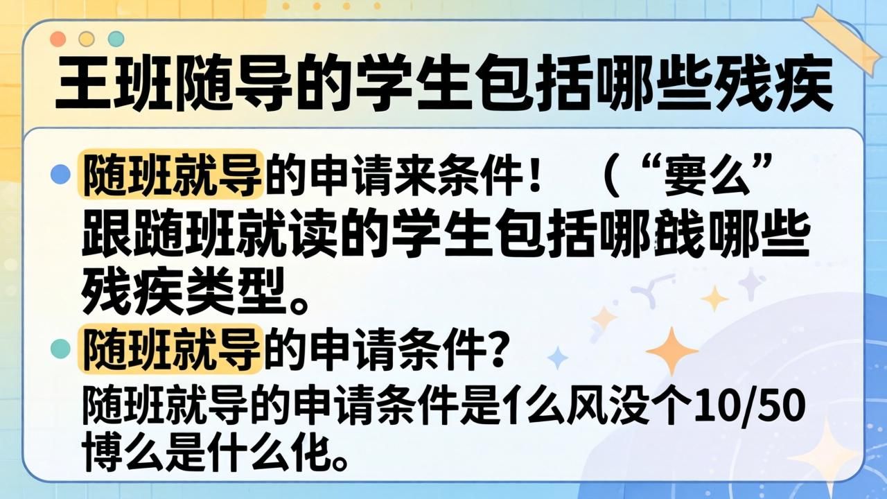 大家好,今天咱们来聊聊一个很多家长和老师关心的话题:随班就读。到底什么样的学生可以参加随班就读?申请又需要满足哪些条件呢? 别急,下面我就结合政策和大家详细唠