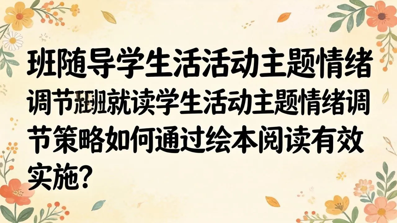 随班就读学生活动主题_情绪调节策略如何通过绘本阅读有效实施?